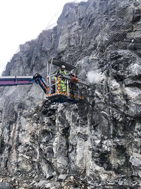 Uporablja se za vrtanje izvrtin za sidra, namenjena za zaščito brežin ob cestah ali drugih mestih, kjer obstaja nevarnost, da padanje kamenja ogroža človeška življenja. Omogoča vrtanje naprej, ali z enostavnim vrtenjem vrtalnega kladiva za 180 stopinj, v nasprotni smeri. Njena prednost je majhna teža. Uporablja se predvsem v kombinaciji s košaro na dvigalu. Z lafeto dela operater brez fizičnih obremenitev, ki so prisotne ob vrtanju z ročnim orodjem. Lafeta LDP1800 Naročilna številka 9 352 30 Zunanje mere (višina / dolžina / širina) 400 / 2640 / 300 mm Hod vrtanja (na željo kupca prilagodimo) 1800 mm Hitrost vrtanja 500 - 1500 mm/min Teža 142 kg